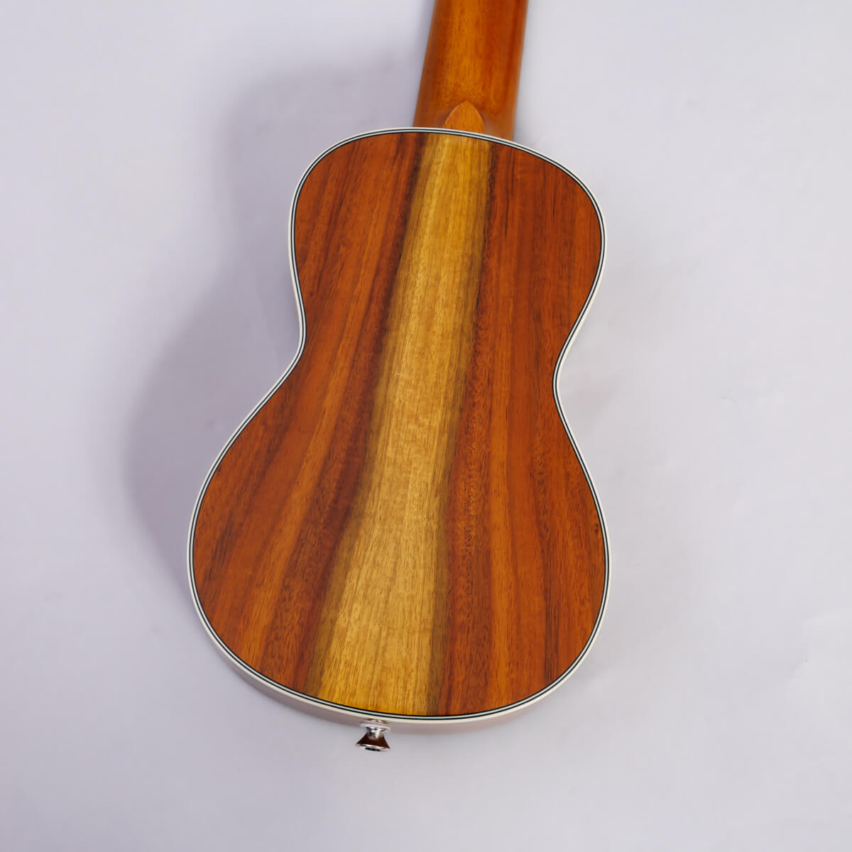 ブラックウッドはハワイアンコアに近い性質を持つ木材で、美しい木目とウクレレらしい明瞭なエッジの効いたサウンドが特徴です。オール単板ならではの豊かな響きに加え、ボディに施されたバインディングやサウンドホールのロゼッタが高級感を演出しています。