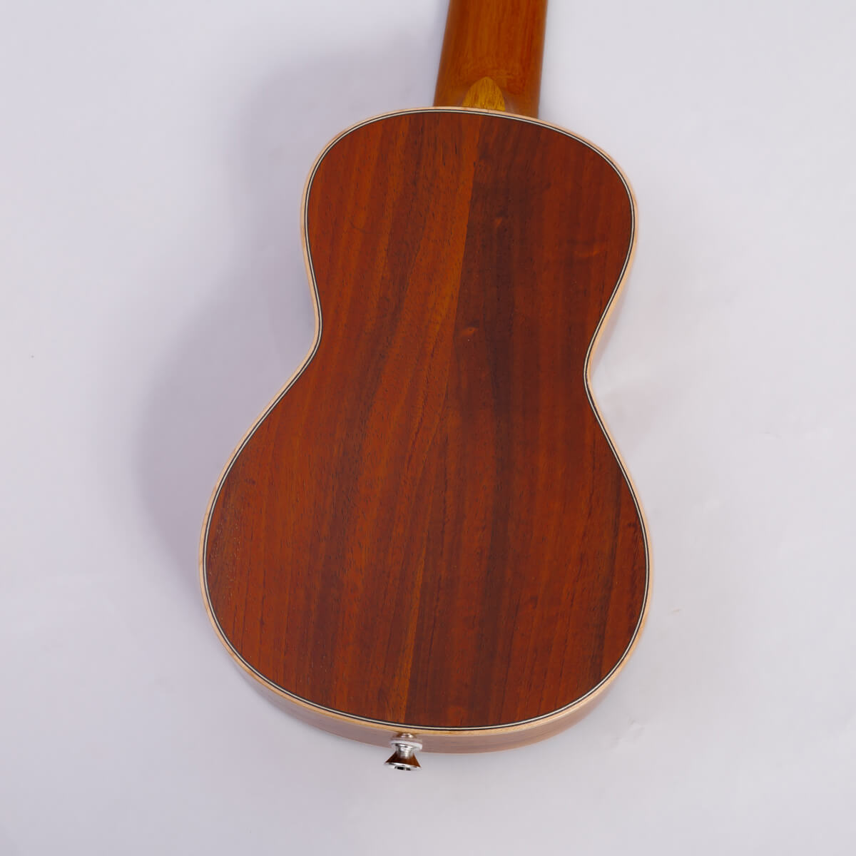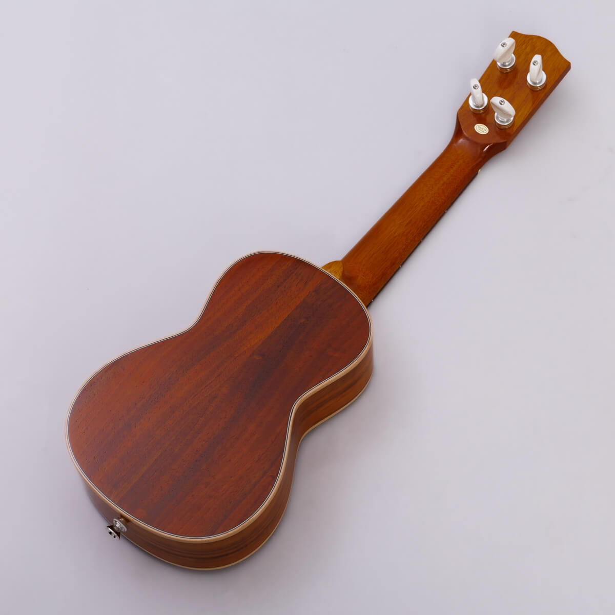 ボディ全体にハワイアンコア単板を使用した、オール単板仕様のソプラノウクレレです。ウクレレの定番木材であるハワイアンコアは、美しい木目と、ハリのある明るく陽気なウクレレらしいサウンドが魅力です。