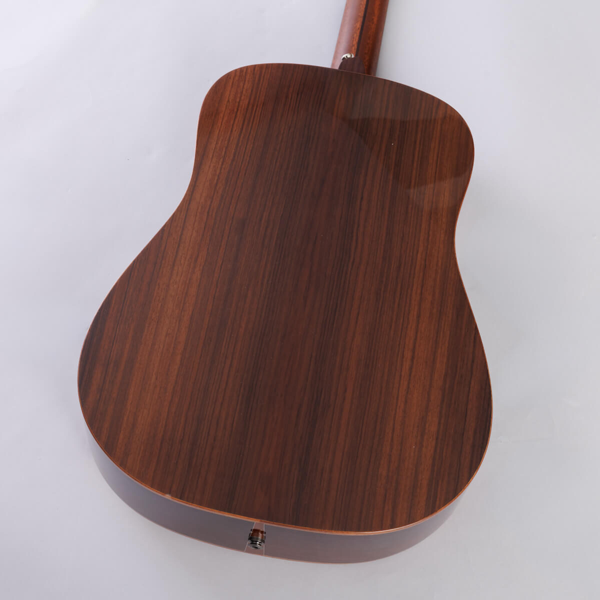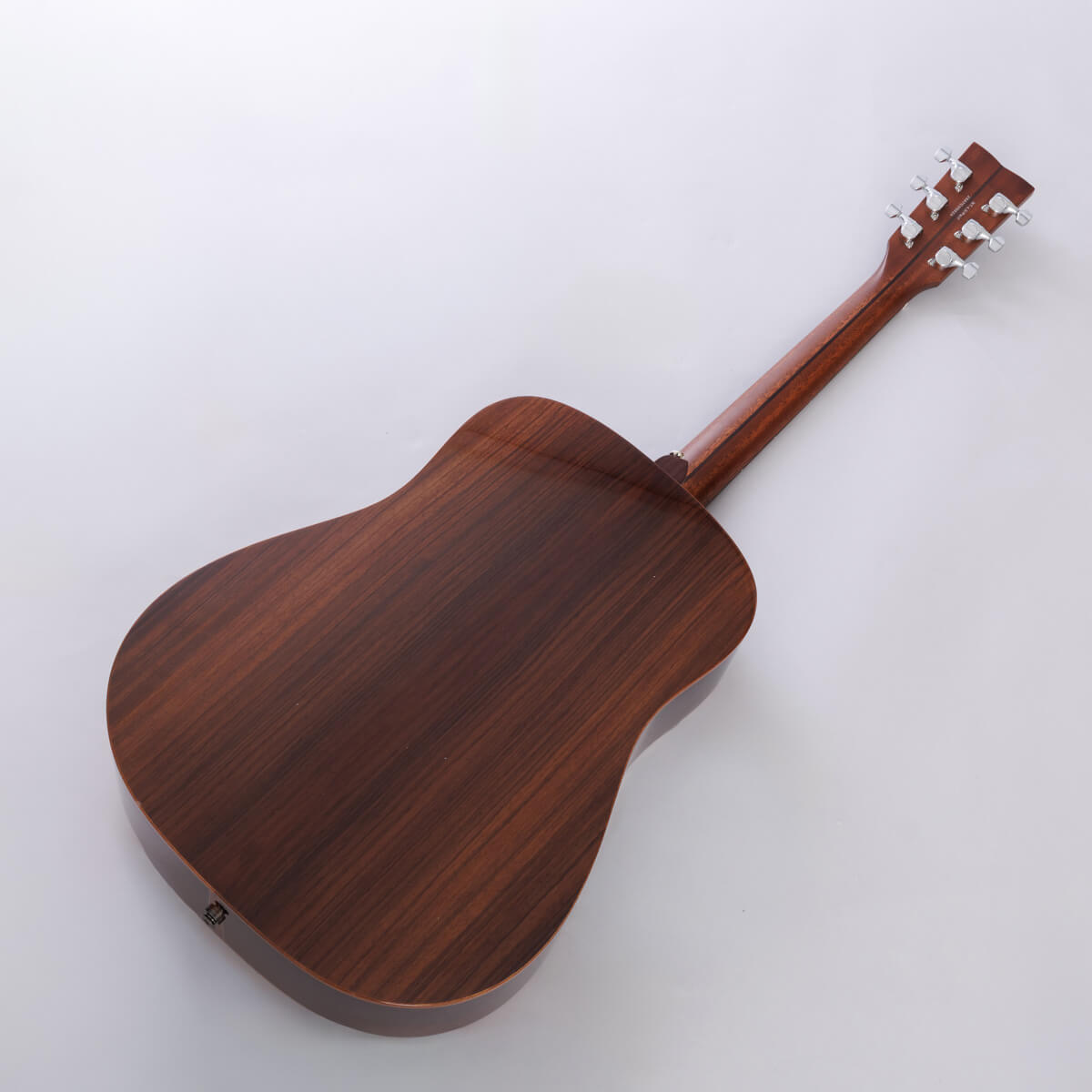 音域全体でクリアかつフラットに鳴り、軽量でありながら適度な強度と弾力を備えたスプルースをトップ材に採用しました。倍音成分が豊かなローズウッドをサイド&バック材に用いることで相性の良い組み合わせとなり、低音から高音までバランスに優れた、ハリのあるサウンドが魅力のオール単板ボディです。