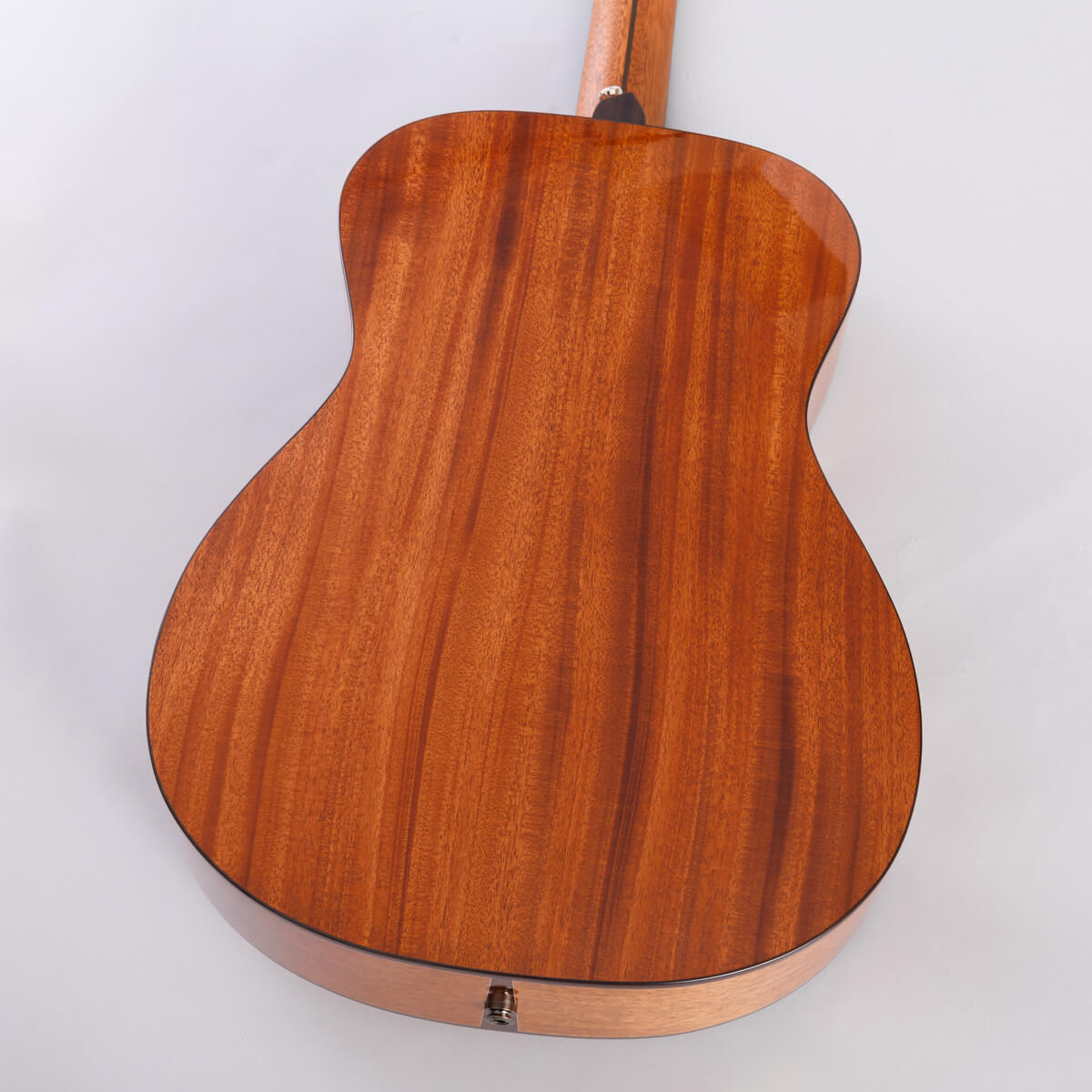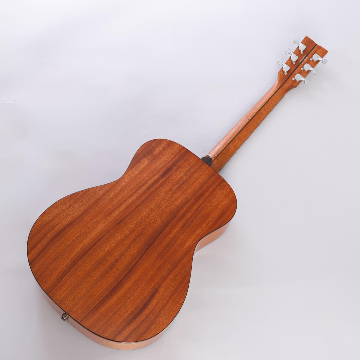 音域全体でクリアかつフラットに鳴り、軽量でありながら適度な強度と弾力を備えたスプルースをトップ材に採用しました。ウォームで深みのあるトーンを持つアフリカンマホガニーをサイド&バック材に用いることで、軽やかで上品なサウンドを生み出すオール単板ボディです。