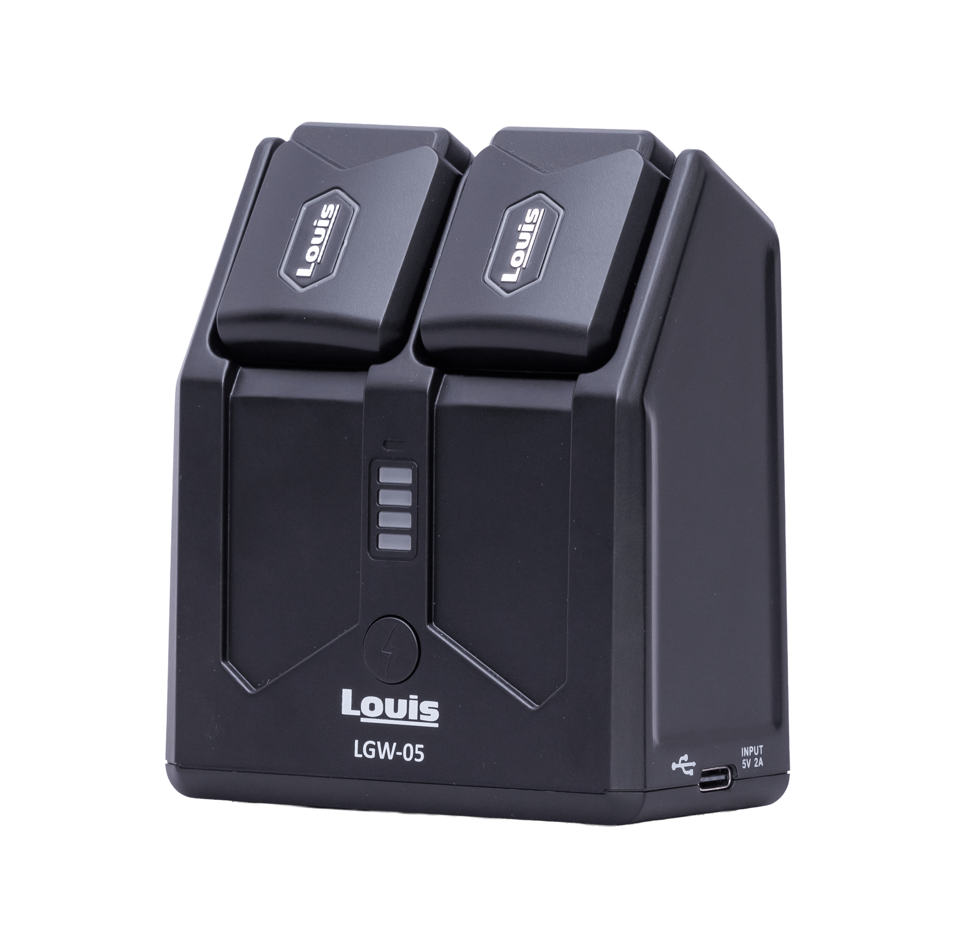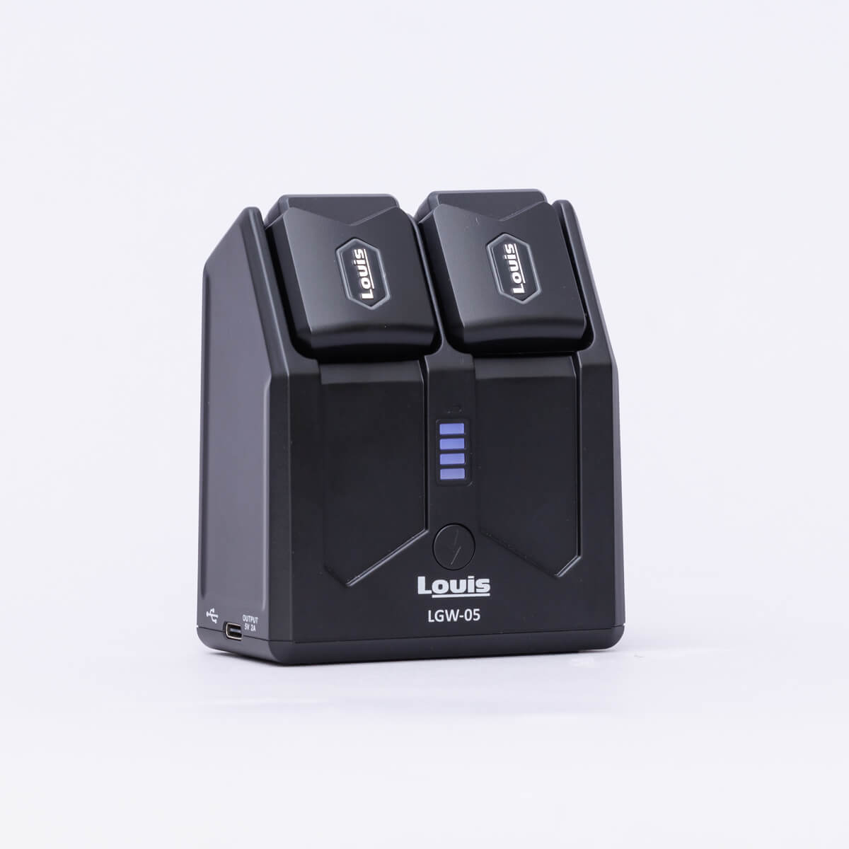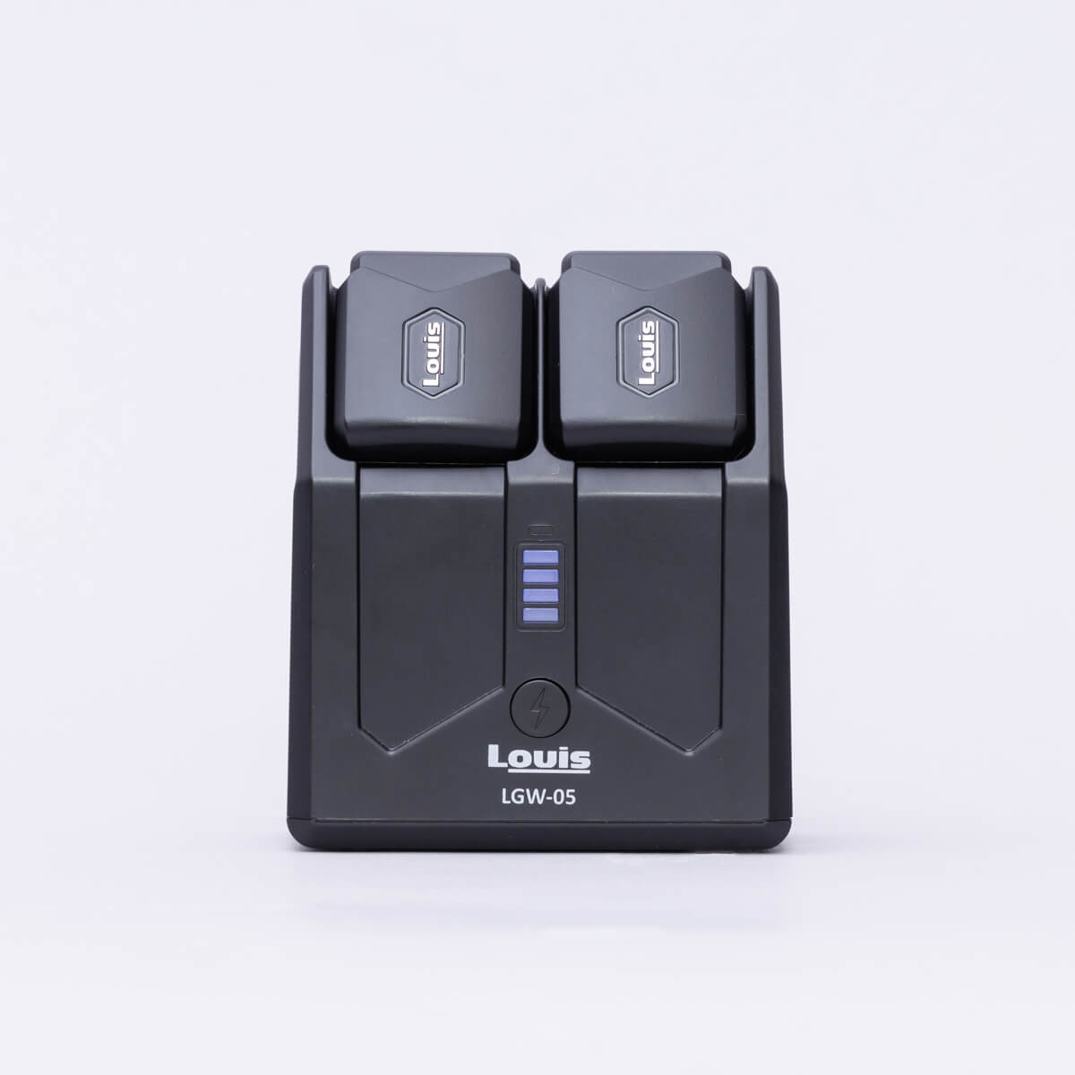 トランスミッター、レシーバーを収納可能な充電ステーション。充電池内蔵で、電源のない場所でも充電が可能です。
