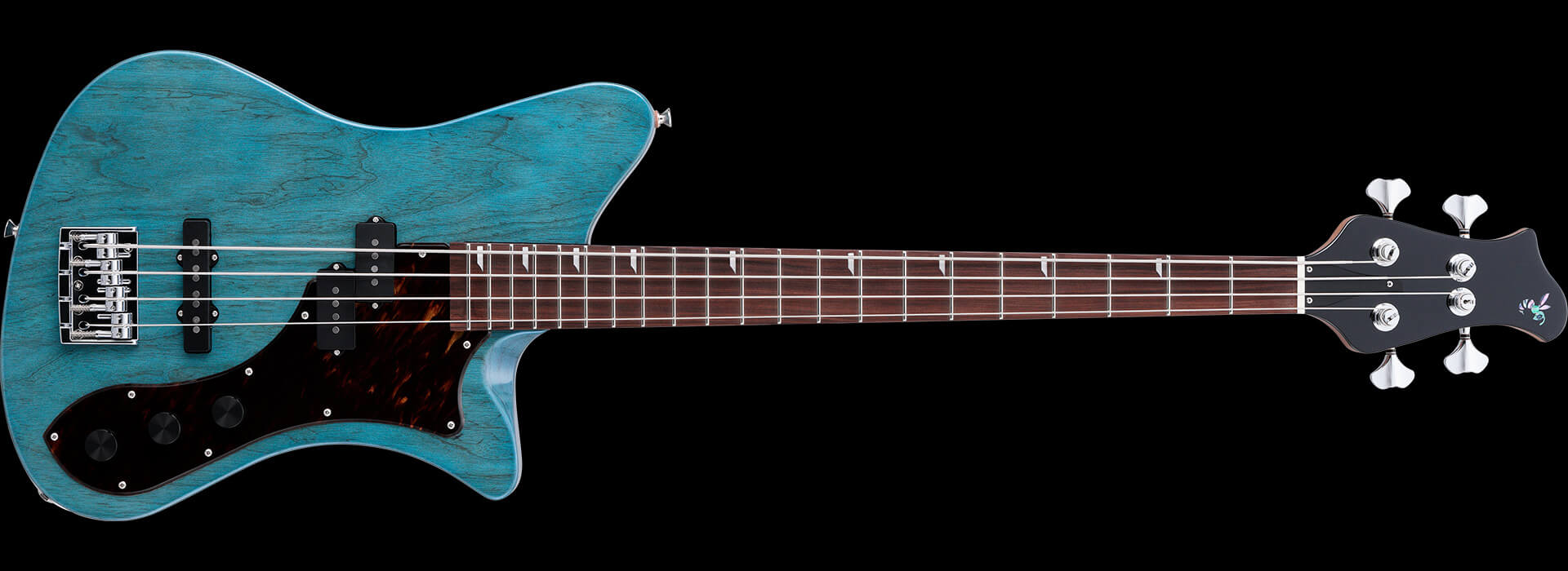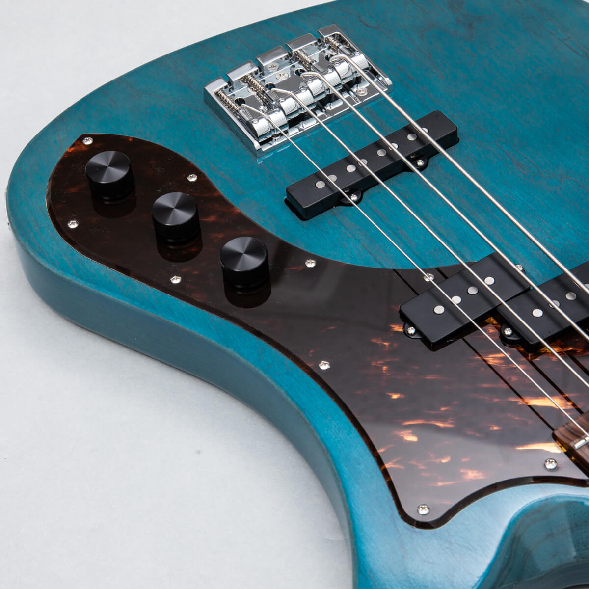 RYOGAオリジナルピックアップをPJレイアウトで搭載。一般的なベースよりもフロント側はよりネック寄り、リア側はよりブリッジ寄りに配置することで、太く重い低音とアタック感を兼ね備えています。扱いやすいパッシブコントロールです。
