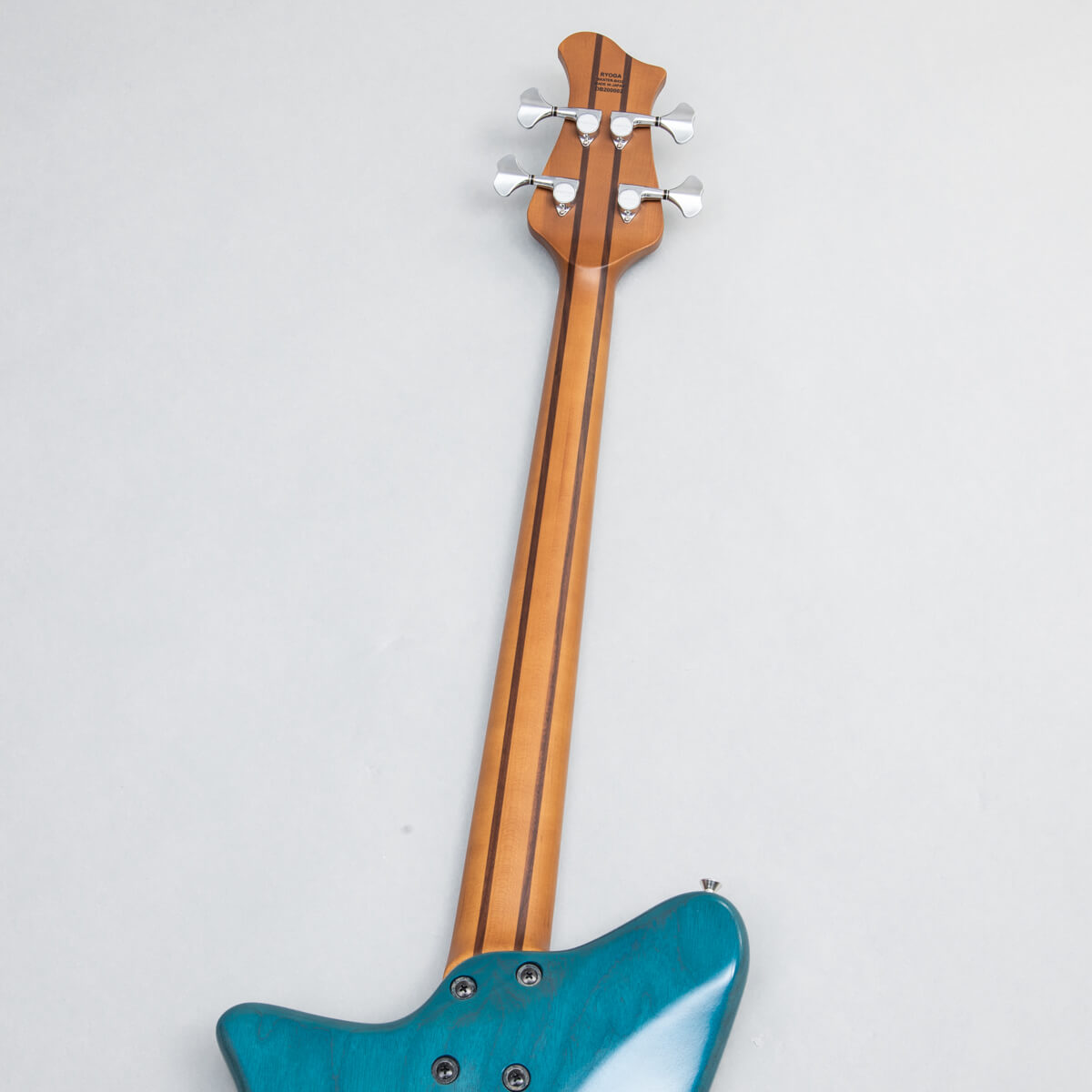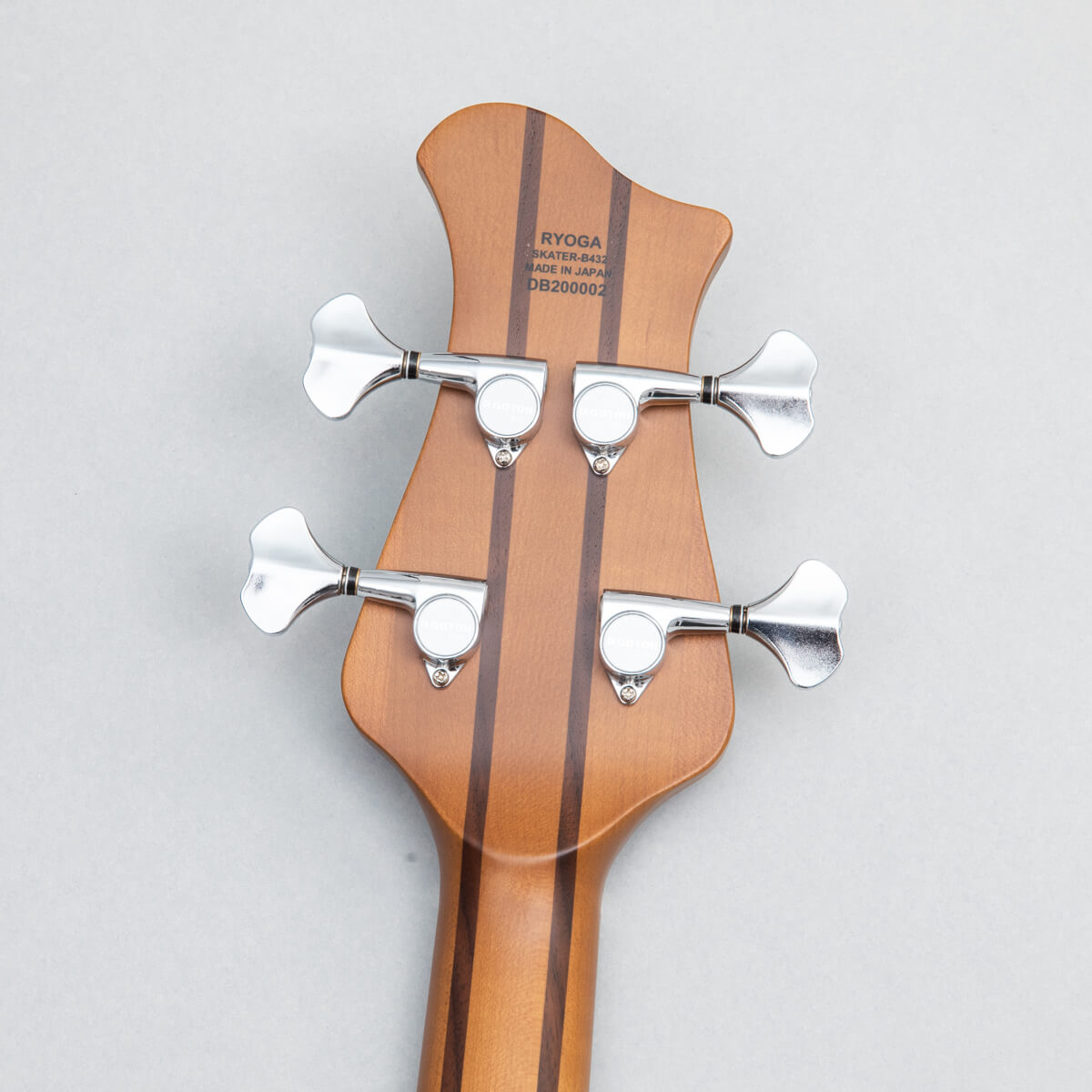ロングとミディアムの中間に相当する33インチ(838mm)スケールを採用したSKATER-BASS。RYOGA独自のヘッドデザインとの相乗効果により、チューニング時にペグまで手が届きやすく、また弦が程よく柔らかいテンション感となるため押さえやすいのが特徴です。ボディやヘッドの形状は比較的コンパクトに抑えながらも、オリジナルピックアップ、ネックジョイント、特注の弦留めブロックを採用することにより、豊かな低音を創り出すことと弦振動を余すことなくボディに伝えることに成功しました。