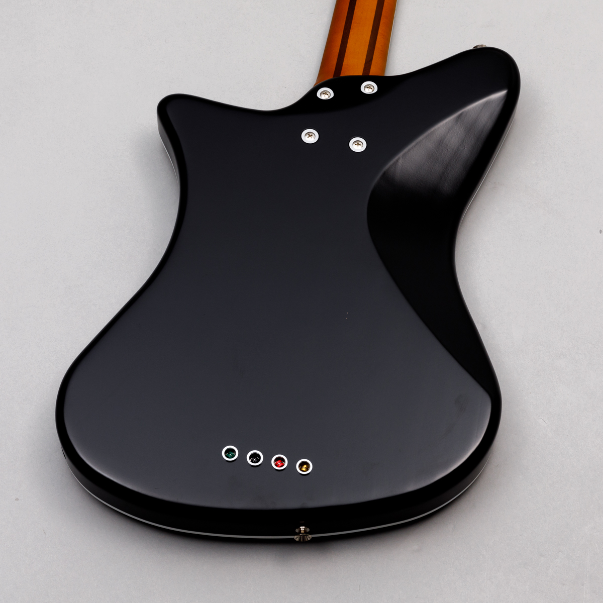 特徴的な独自デザインのボディシェイプ。立奏時・座奏時それぞれでボディの重心がどこに置かれるかを想定して設計されており、高いボディバランスを誇ります。構えた右手とブリッジの位置関係など、プレイヤー視点でパーツ配置にもこだわっています。